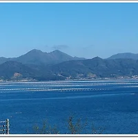 산달섬 왼쪽 멀리 노자산, 가라산이 보인다.