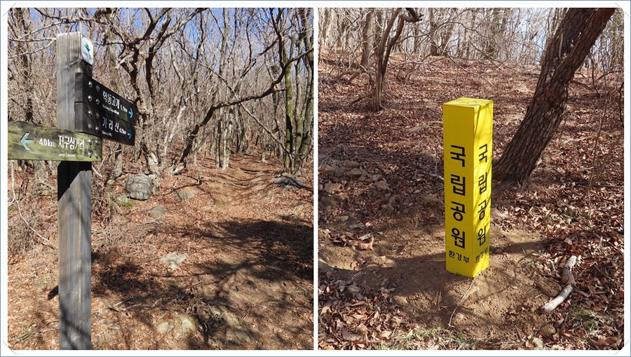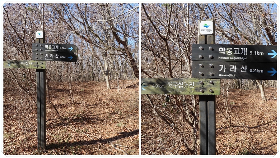 3분쯤 내려가서 가라산 0.2km 이정표에서