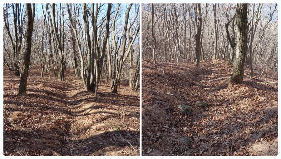 낙엽으로 덮인 가느다란 산길을 8분쯤