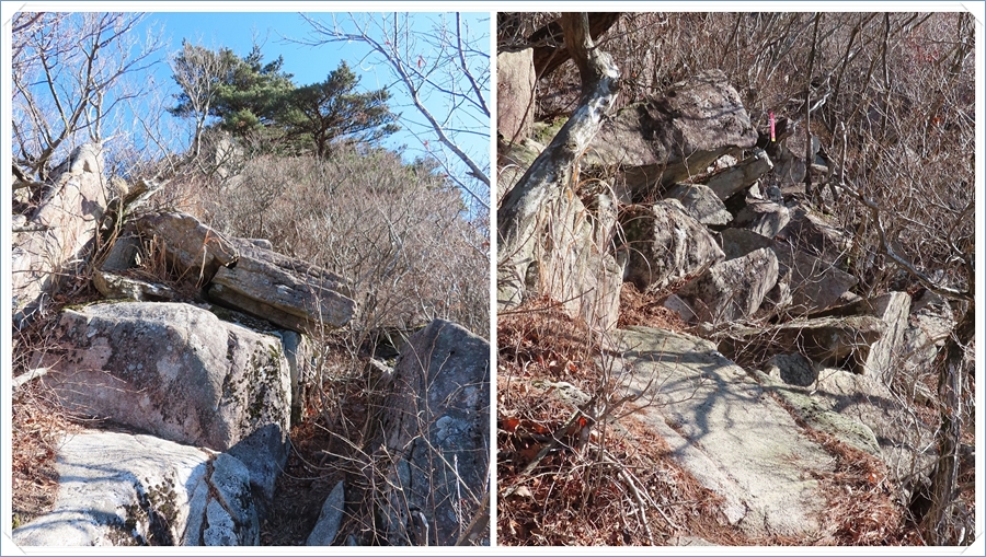 정면에 나타난 암릉 왼쪽으로 진행하여