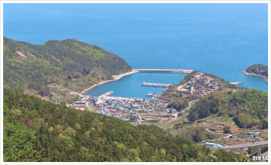 산길 옆 바위로 올라가자 외포항이 보였다.