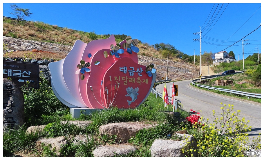 버스정류소를 지나자 대금산 진달래 축제